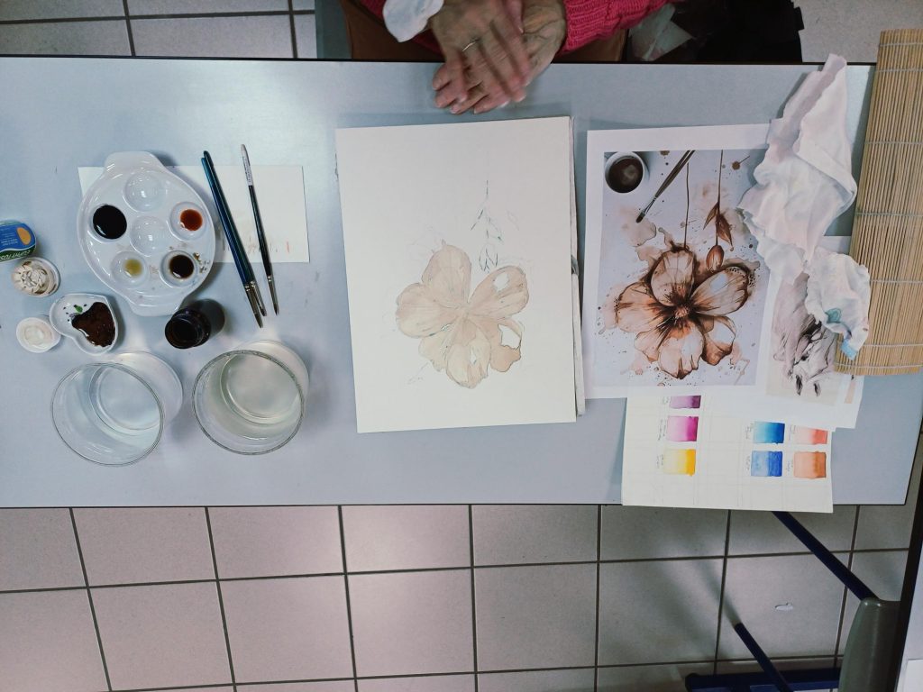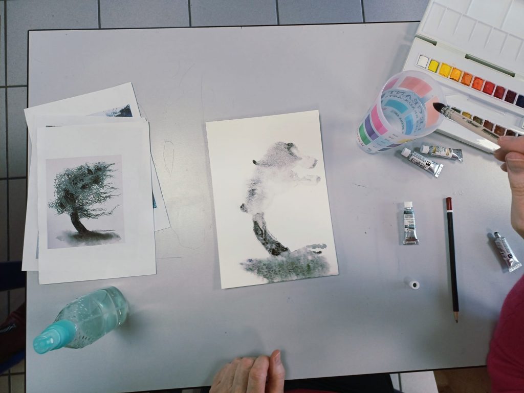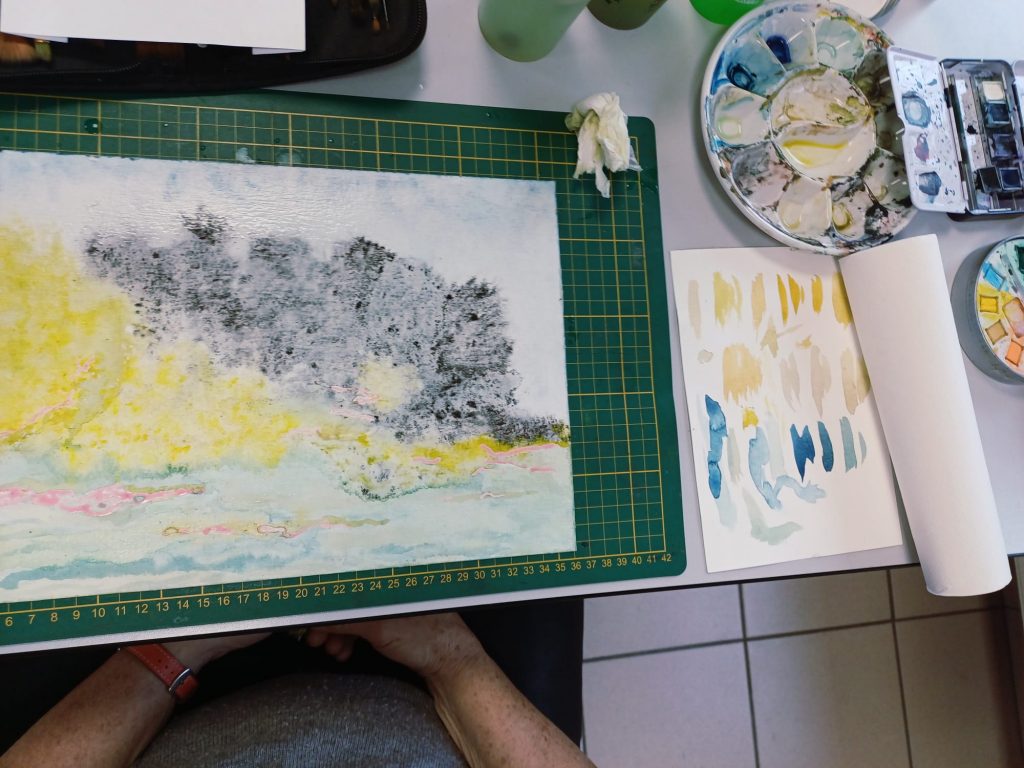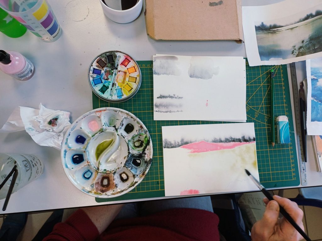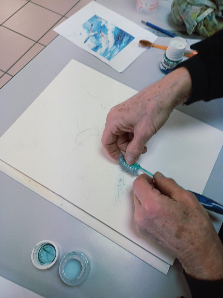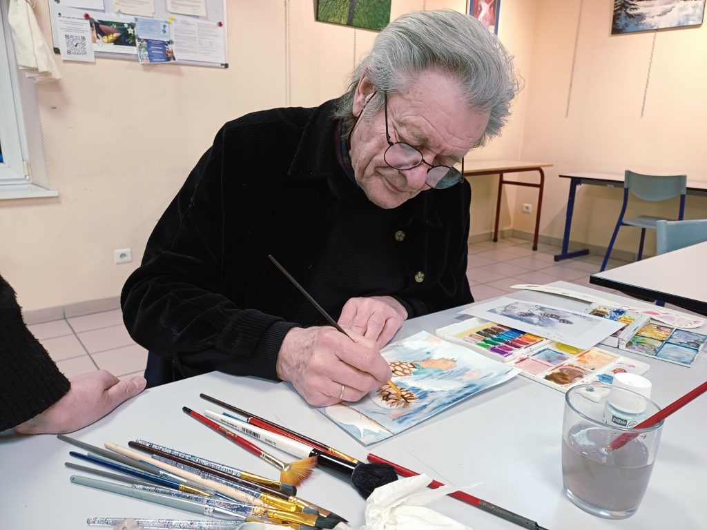 Vendredi 27 novembre, des adhérents ont réalisé des peintures en utilisant plusieurs techniques différentes : aquarelle, pastel sec, crayon aquarellable, encre, crayon à l’huile…..