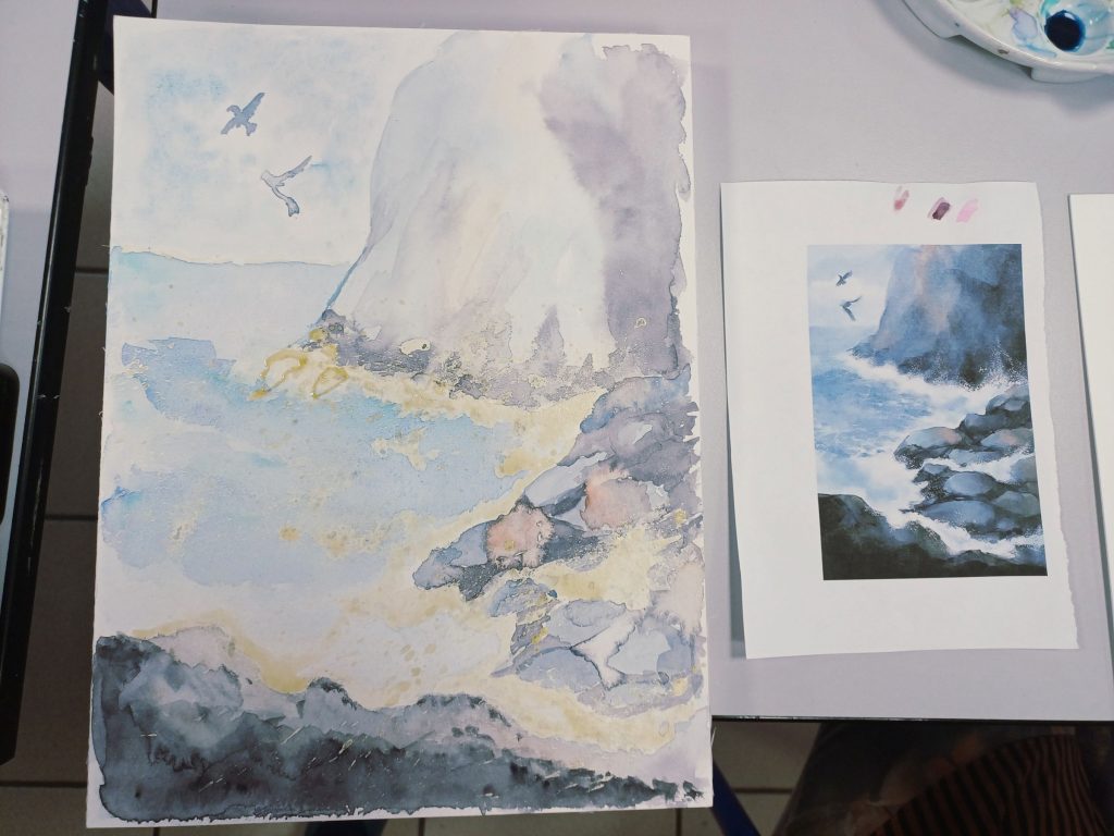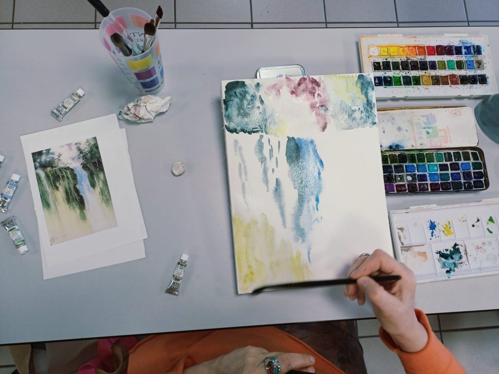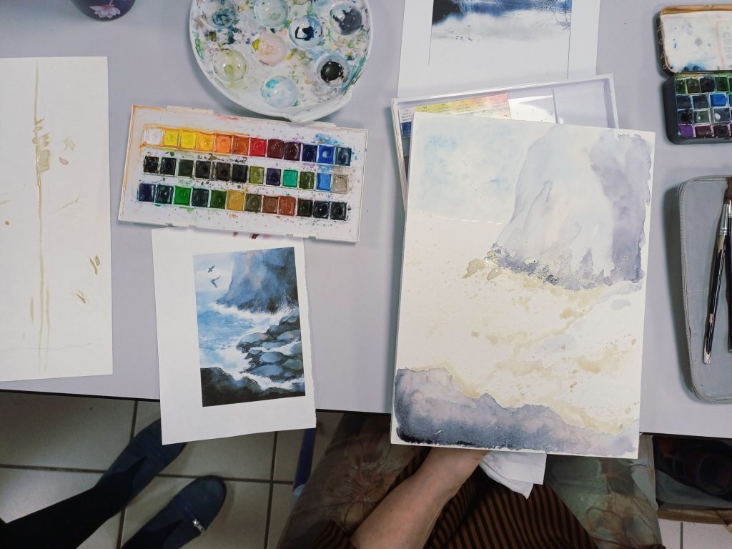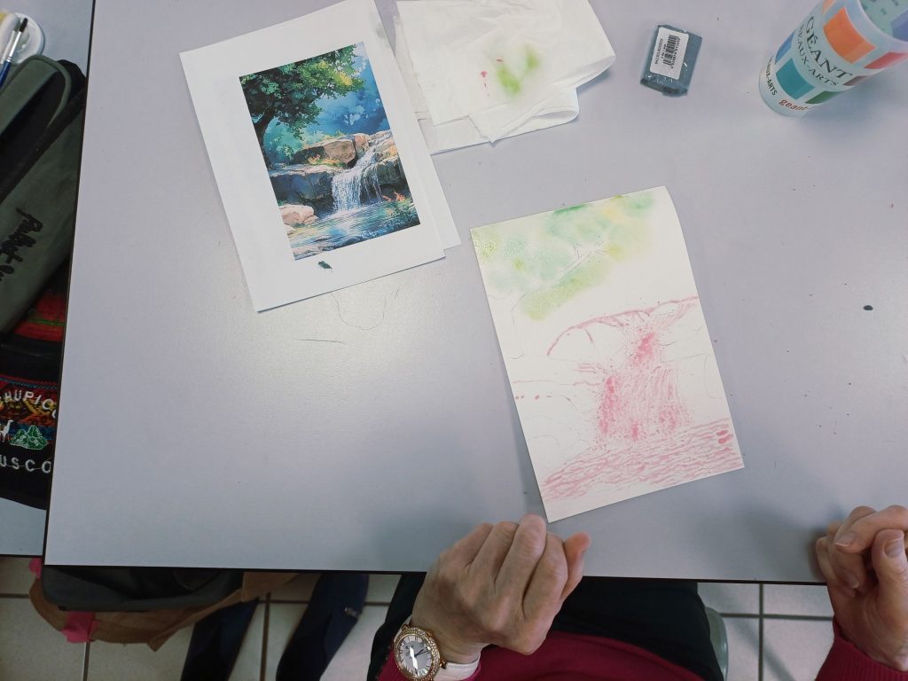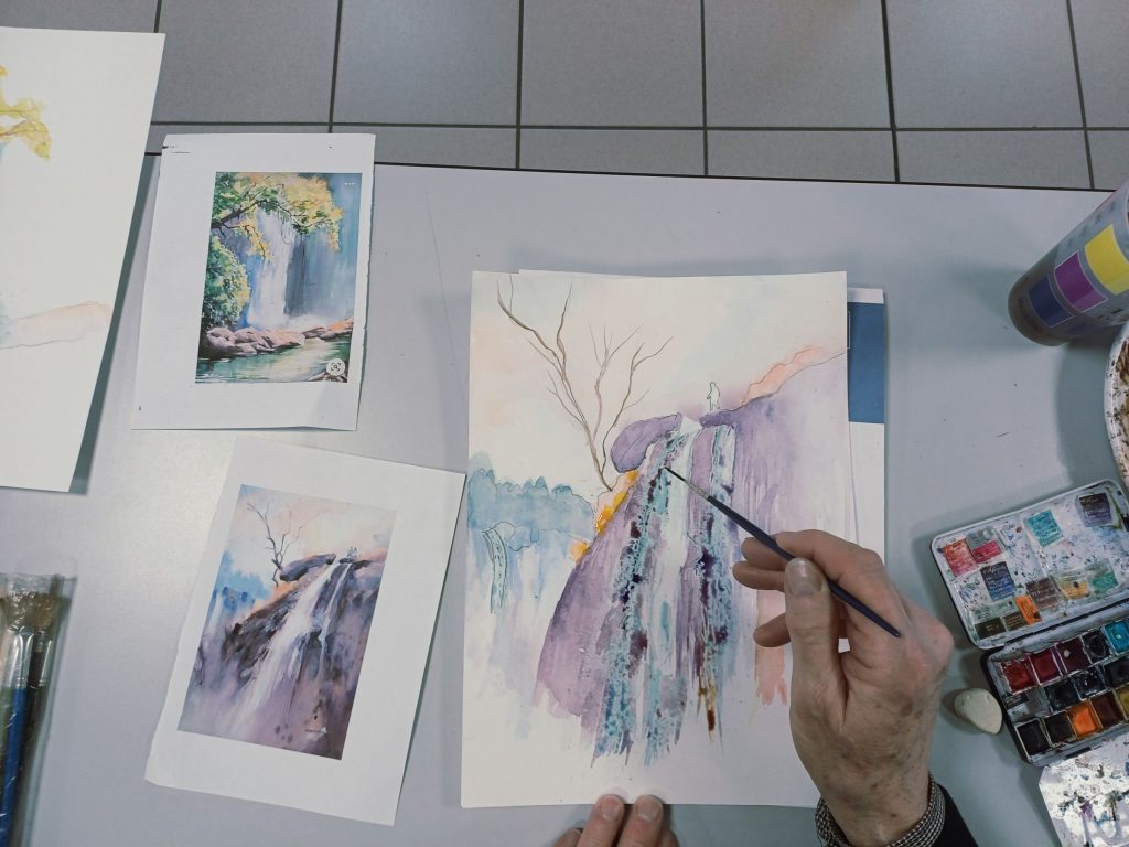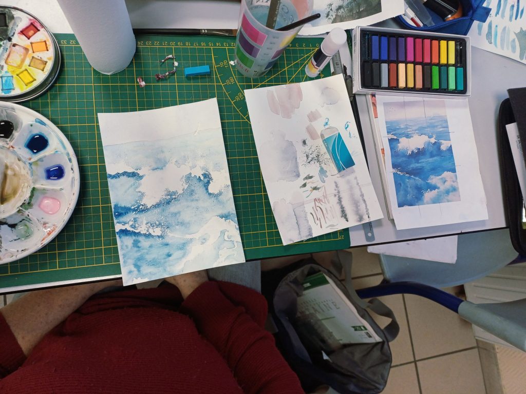 Vendredi 23 janvier 2026, le thème de l’atelier était peindre l’eau : mer, cascade, rivière…..