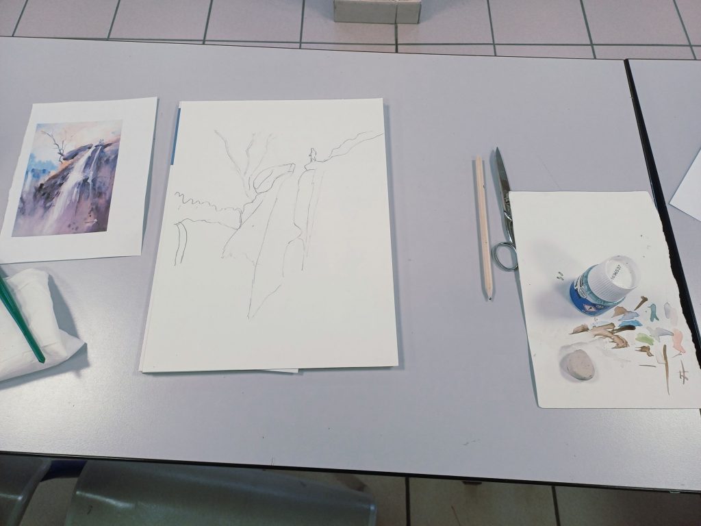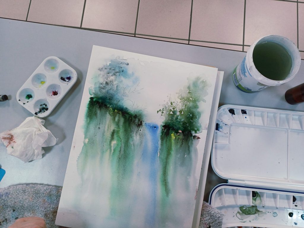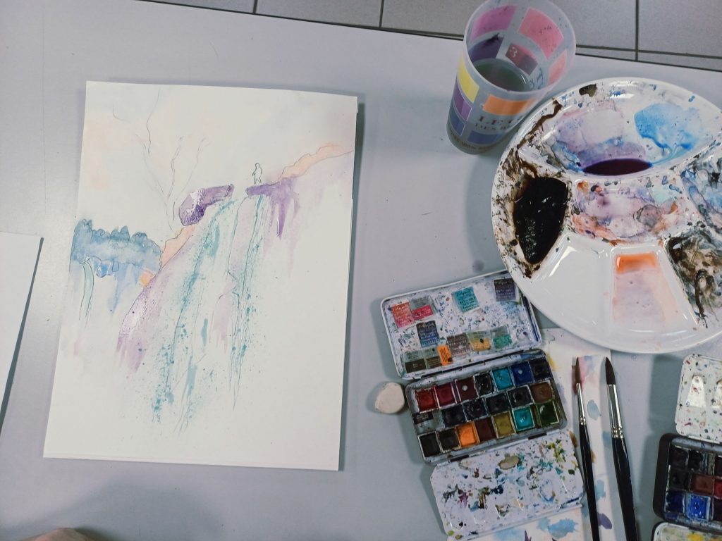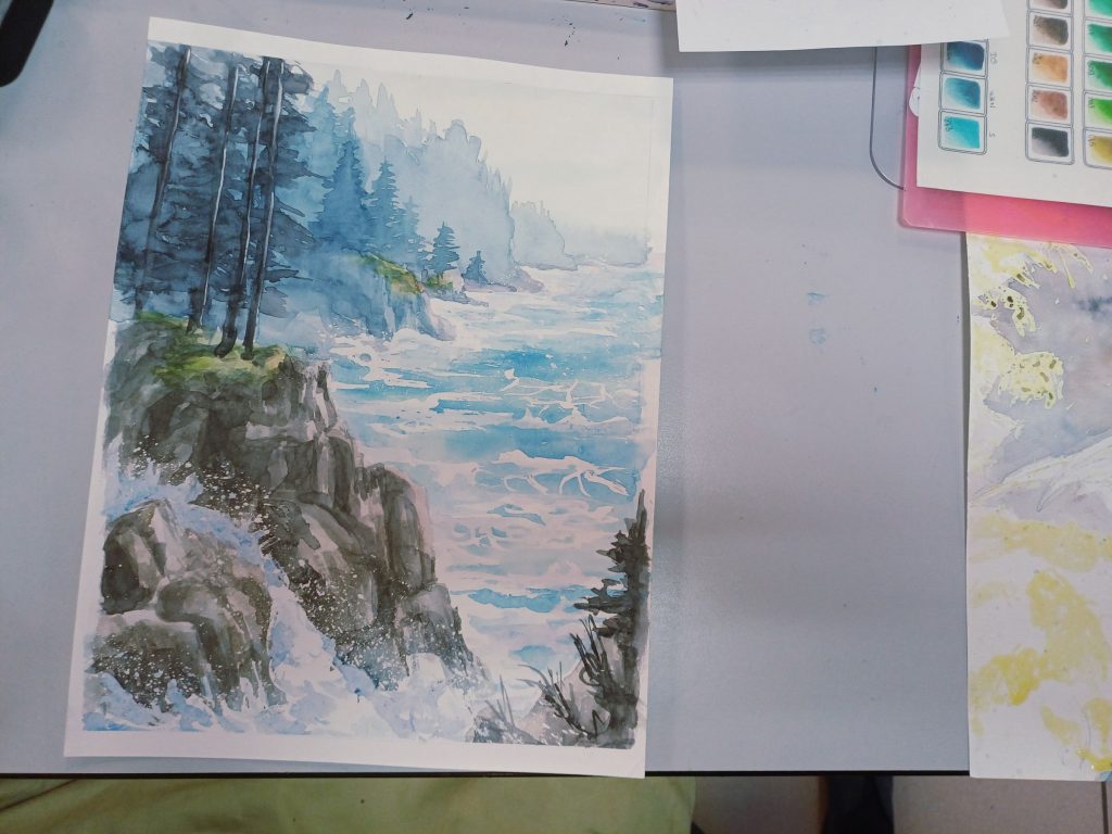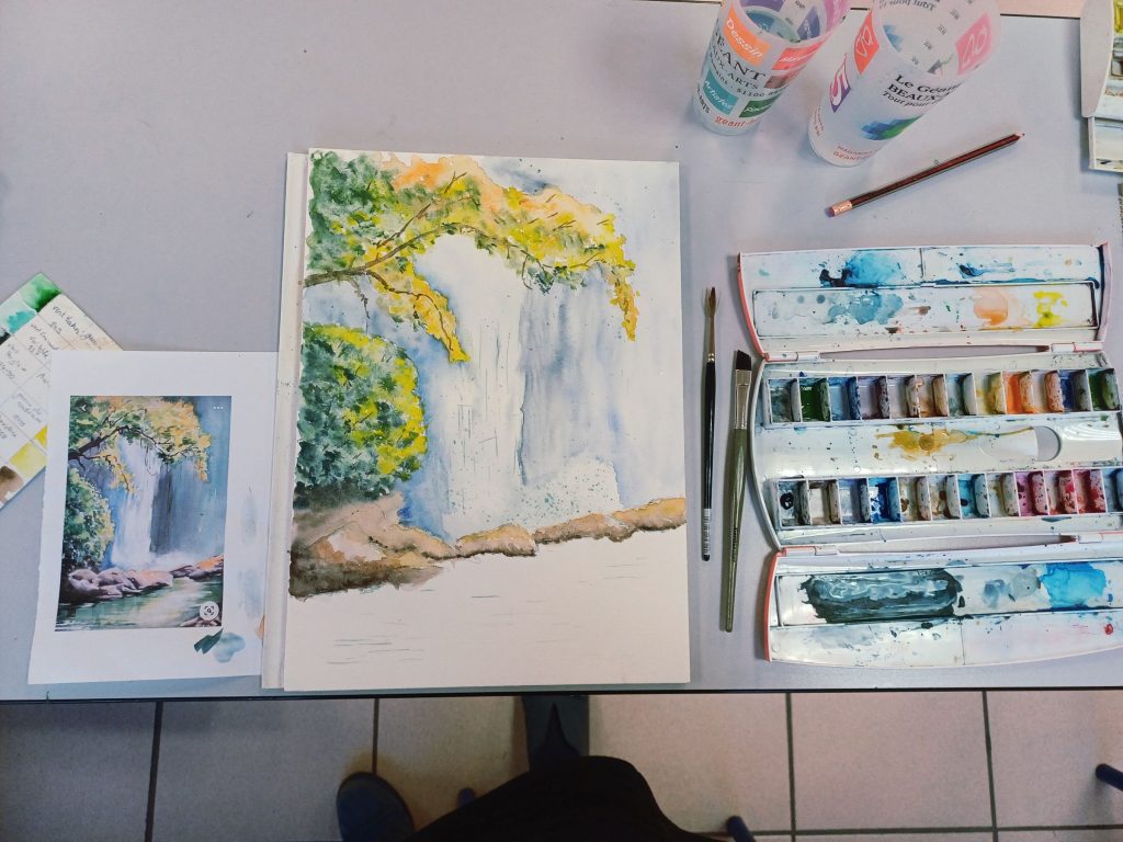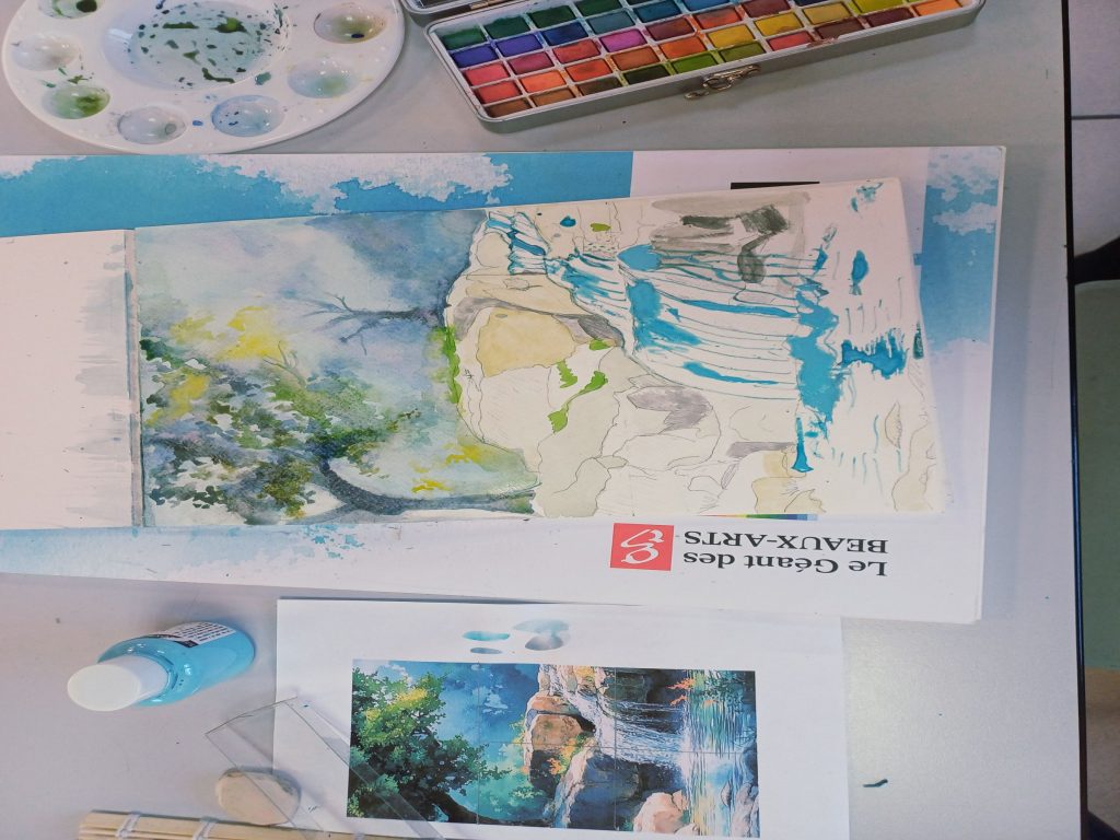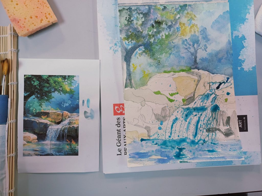 Vendredi 23 janvier 2026, le thème de l’atelier était peindre l’eau : mer, cascade, rivière…..