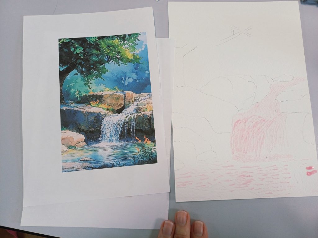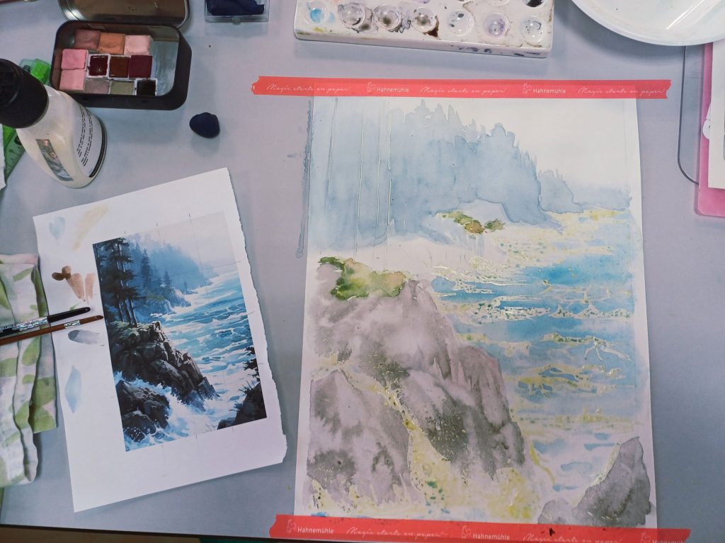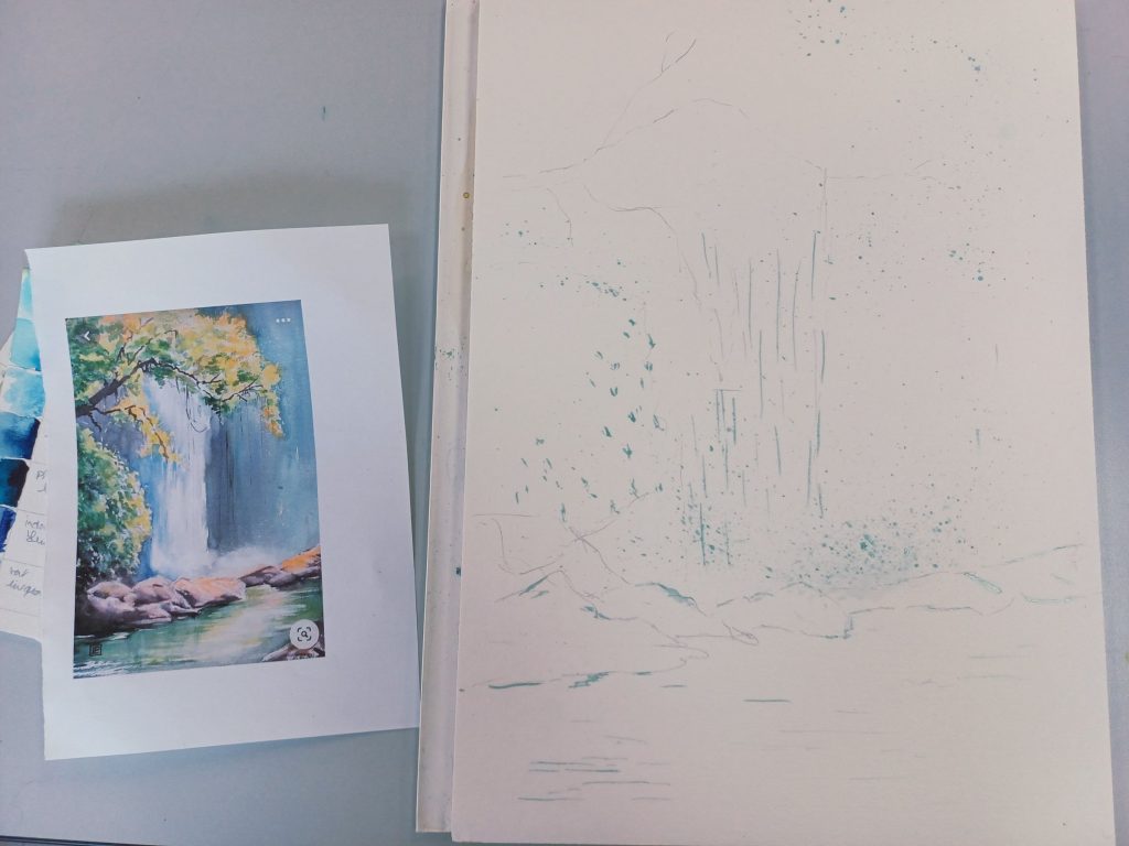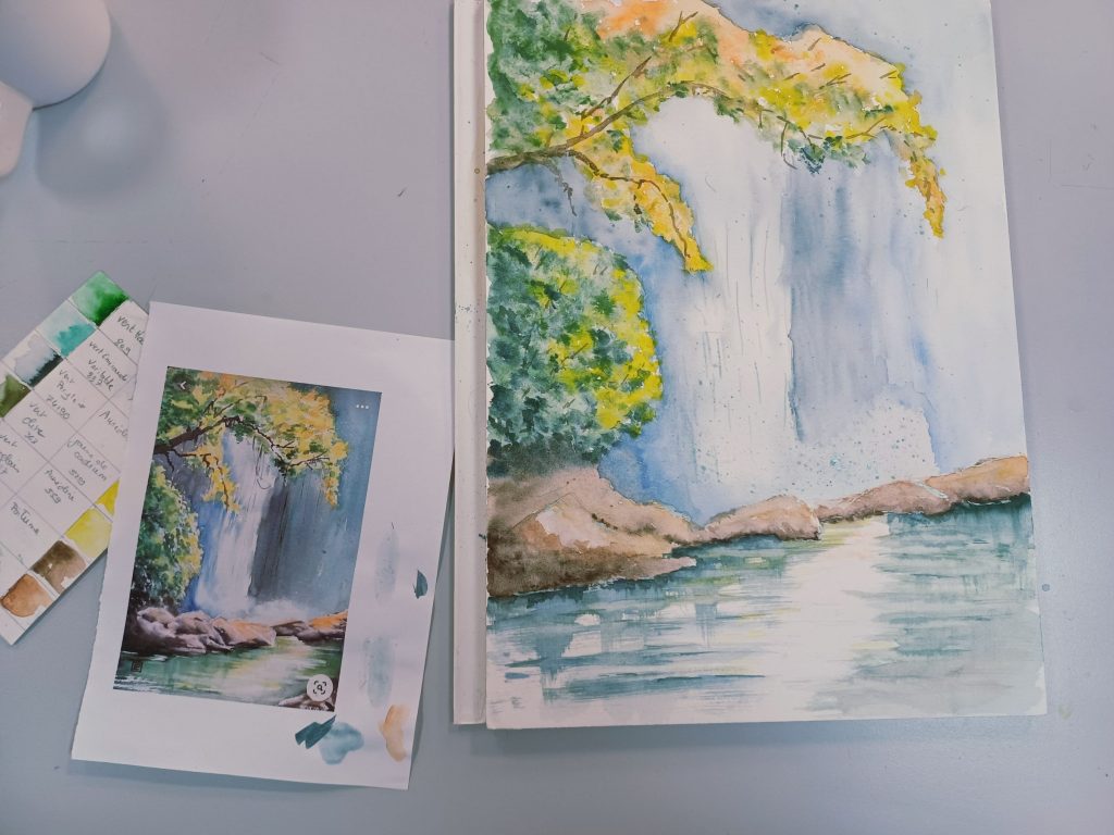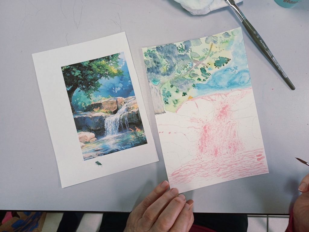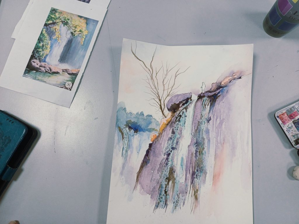 Vendredi 23 janvier 2026, le thème de l’atelier était peindre l’eau : mer, cascade, rivière…..
